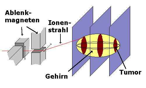 davon gewählt, wie tief die Ionen bis zum Tumor in den Körper vordringen
