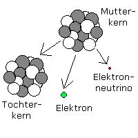 | Bei der Beta-Strahlung handelt es sich um negativ geladene Teilchen mit einer wesentlich größeren Reichweite als bei der Alpha-Strahlung. Sie durchdringt mühelos Papier, und sie wird erst durch eine 3mm starke Aluminiumschicht feststellbar geschwächt. In Luft hat diese Strahlung eine Reichweite von mehreren Metern. | ![]() |