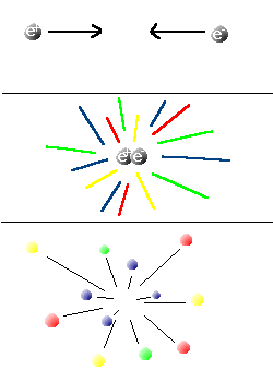 gegeneinander beschleunigt und zur Kollision gebracht.