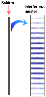 eines Interferenzmusters, das auf einem entsprechendem Schirm erscheinen würde, vertraut machen. Man beachte dabei, dass die Intensitätsverteilung unter der