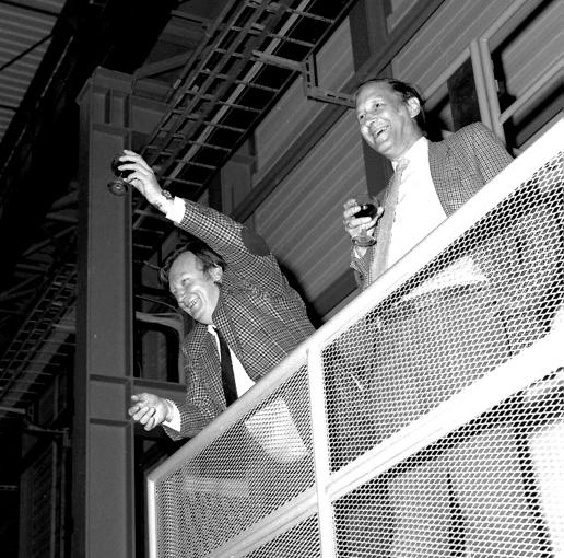 Carlo Rubbia a Simon van der Meer na odovzdávaní Nobelovej ceny v roku 1984