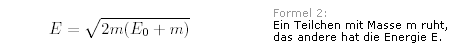 Um zu berechnen, wie die Sache aussieht, wenn eines der Teilchen mit Masse m ruht, muss man die Relativitätstheorie um Rat fragen. Das soll hier nicht geschehen. Das Ergebnis sei aber dennoch verraten: