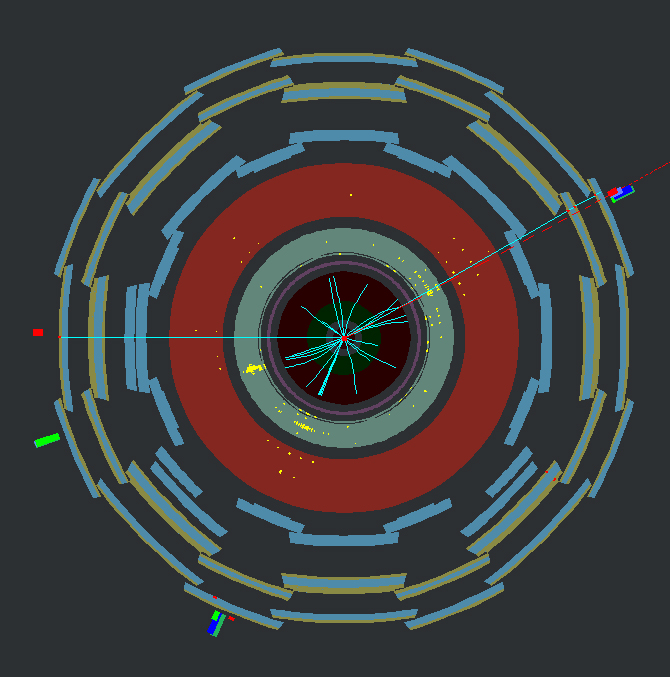 Beispiel eines Z0→μ+μ- Zerfalls