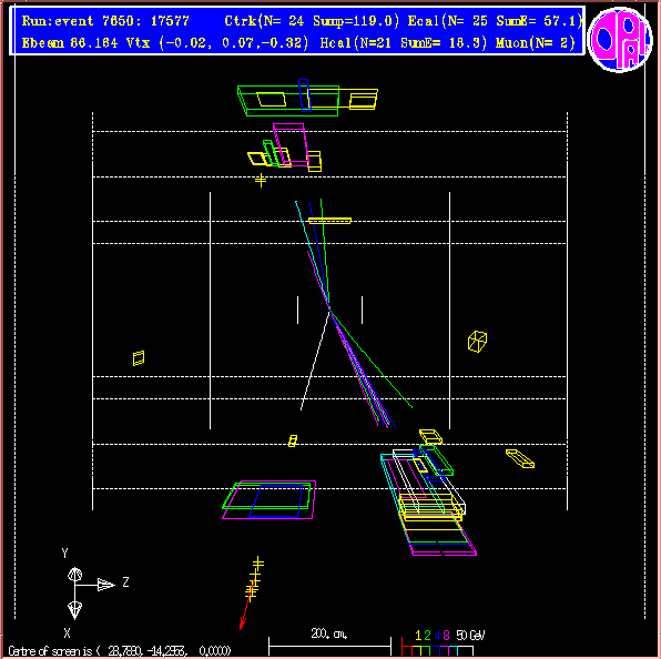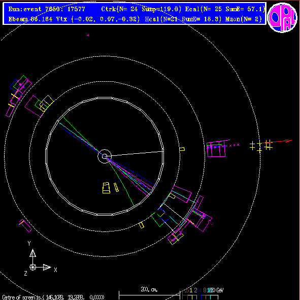 WW (muon-neutrino/two quark) event (example WW (muon-neutrino/two quark) events)