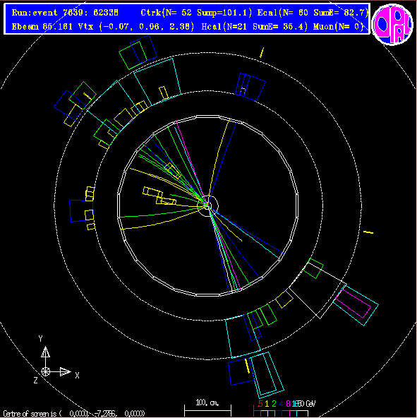 Pogled na događaj sa strane (sa prikazanim konusima koji odredjuju četiri jet-a)