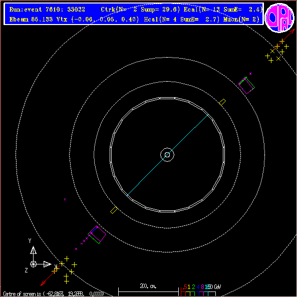 Všimnite si, že v tejto ukážke, je hybnosť oboch miónov menšia ako 16 GeV.